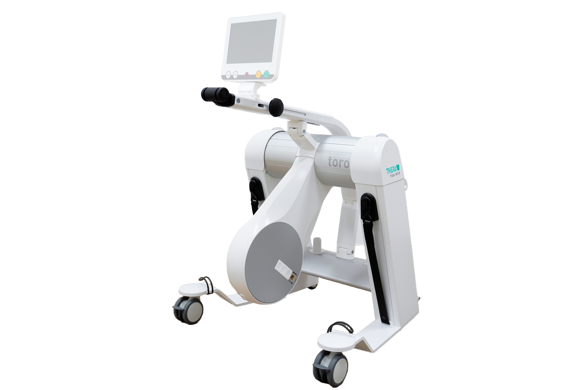 Το THERA‑Trainer toro είναι ένα στατικό ποδήλατο, κατάλληλο για ενεργητική, βοηθούμενη ή παθητική εκγύμναση των άνω και κάτω άκρων του σώματος. Με έναν ισχυρό κινητήρα και τις ευέλικτες ρυθμίσεις, το toro προσφέρει εκπαίδευση σε ένα ευρύ φάσμα ασθενών – από πολύ αδύναμους έως ιδιαίτερα δραστήριους, από χαμηλόσωμους έως μεγαλόσωμους. Είναι το απόλυτο σύστημα ποδηλατικής αποκατάστασης – σχεδιασμένο αποκλειστικά για επαγγελματίες υγείας που απαιτούν τα καλύτερα.